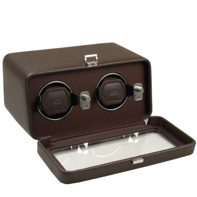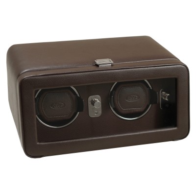 Our Windsor Double Winder features a supple pebbled exterior, polished chrome fittings, a silk fabric faceplate and glass front cover. This winder provides 900 preset turns per day and rotation options of clockwise, counter-clockwise and bi-directional.