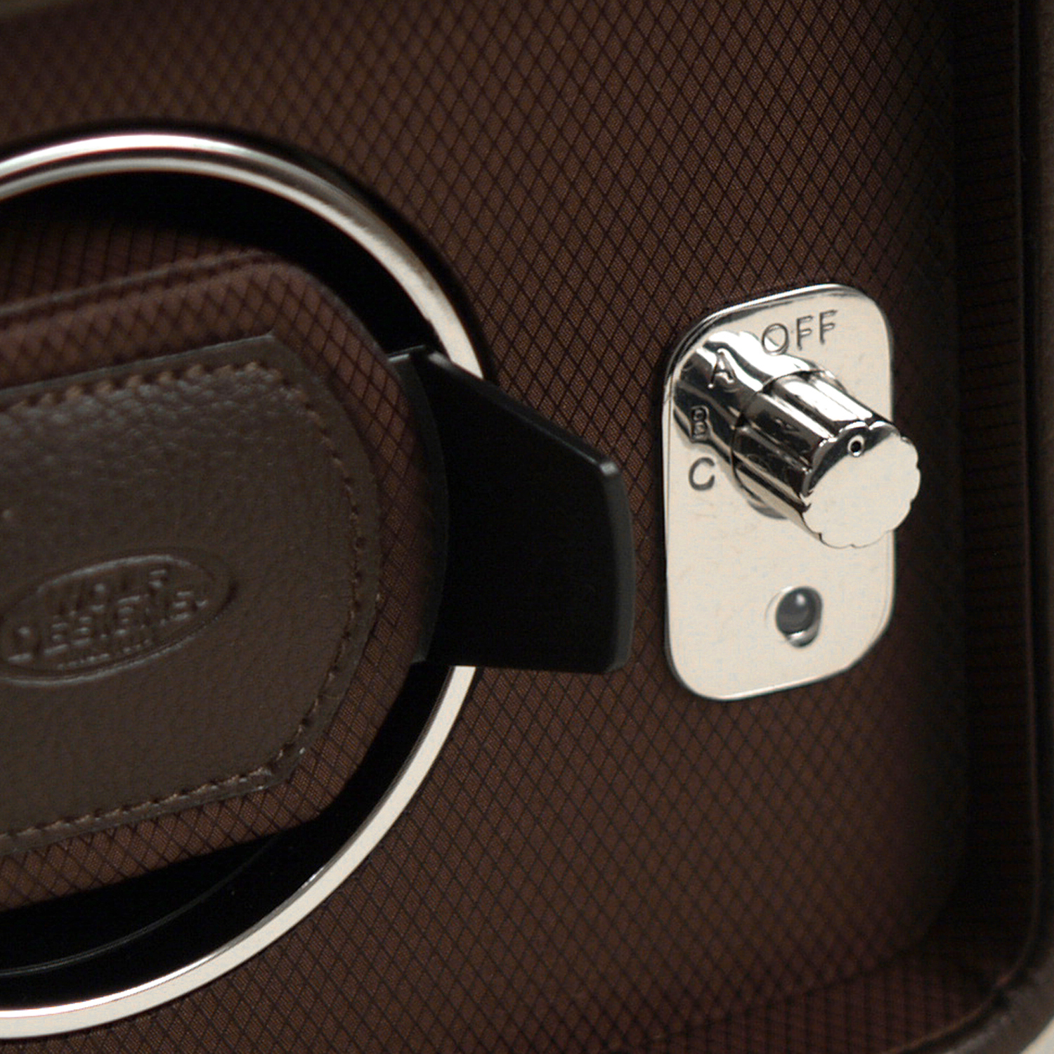 The Windsor Single Winder is conveniently compact with supple pebbled exterior, polished chrome fittings and a silk fabric faceplate. This winder provides 900 preset turns per day and rotation options of clockwise, counter-clockwise and bi-directional.