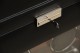 Pebble faux leather exterior, silk fabric faceplate, glass front cover and chrome key lock closure