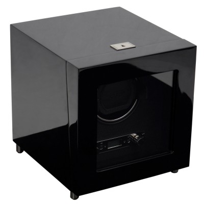 The Savoy Collection Watch Winders are constructed with a sturdy wooden frame, classic black piano exterior and a black textured silk faceplate. It features chrome plated hardware, recessed metal hinges, key lock closure, see-through tempered glass lid and operates on either 3.3V Adapter (included) or D- Cell batteries. The Module 2.7 Watch Winder provides turns per day options of 300-1200 turns per day rotating clockwise, counter-clockwise or bi-directional. The individual options of rotation and direction settings combine to offer 57 personal programming options.