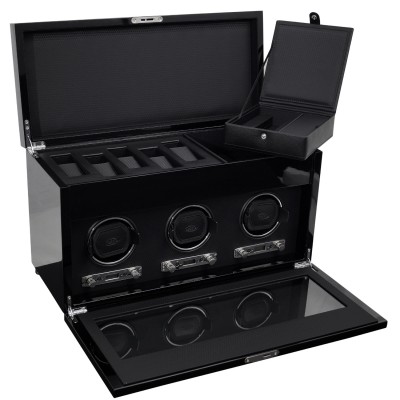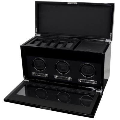 Wolf Designs Savoy Triple Winder with Storage – Black