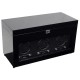 The Savoy Collection Watch Winders are constructed with a sturdy wooden frame, classic black piano exterior and a black textured silk faceplate. It features chrome plated hardware, recessed metal hinges, key lock closure, see-through tempered glass lid and operates on either 3.3V Adapter (included) or D- Cell batteries. The Module 2.7 Watch Winder provides turns per day options of 300-1200 turns per day rotating clockwise, counter-clockwise or bi-directional. The individual options of rotation and direction settings combine to offer 57 personal programming options. Additionally, this Triple Winder provides storage for up to five additional watches and includes a removable travel case for one watch storage.